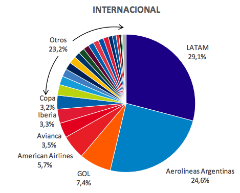 Hay más cuadros, pero cierro con el de market share, donde no está bien que en cabotaje esté todo tan concentrado y es donde tienen que entrar nuevos jugadores para repartir la torta, lo que no significa que los AR pierda pasajeros…
