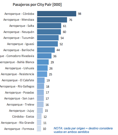 En cuanto a pasajeros, Córdoba tercera cómoda, Mendoza cuarta, Salta quinta y Neuquén sexta. Todo lógico.