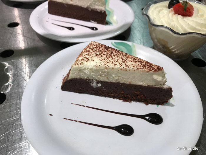 Antes de seguir con ese video de cierre, me quiero detener en este postre… uno más de chocolate, como tantos que tiene el barco. Pero el detalle es el cartel siguiente