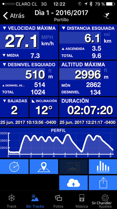 Y la aplicación que usé y mostré en twitter para ver los recorridos de ski, se llama SKI TRACKS y está en iPhone y Android. Está la gratuita pero la paga son 2 dólares creo. Esta es la info de la mañana del domingo