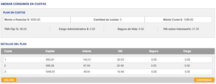 Hice una simulación y así mostraba un consumo de 3.000 pesos cuotificado