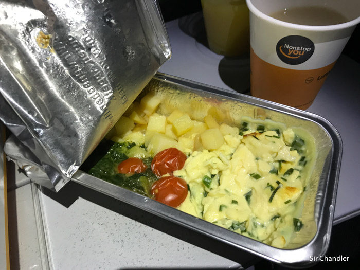 Dos horas antes del aterrizaje llegó el desayuno con una única opción.