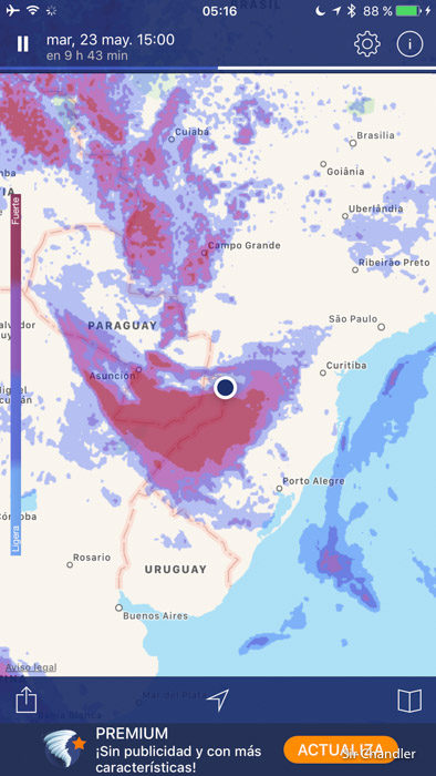 Se me ocurrió ver la app del clima que tengo, un radar… y estaba heavy. No se para que la abrí 😛 (estaba con wifi)