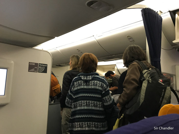 Acá en la puerta de embarque donde claramente el vuelo estaba llenísimo. Había una fila muy larga, la cual no ocupé hasta ver que se me acercaba el final… porque eso dice mi religión 😛