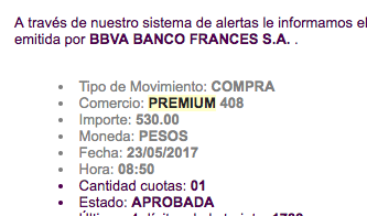 O sea llegó $530 y en el resumen vuelven los $50. De paso la alerta de consumo… que siempre conviene tener configurada!