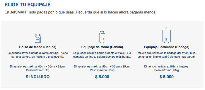 ¿Cuál sería la diferencia? Seguramente cobren por algo más… y buscando en su sitio web se confirma que cobran por el equipaje de mano. Y un detalle no menor, mochila incluída, de mano cuesta lo mismo que la de bodega.