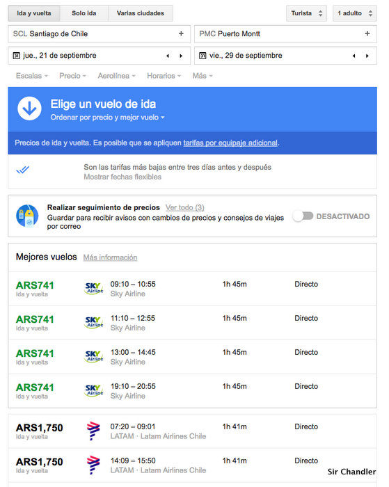 O sea que google Flights no está funcionando muy bien aun en Chile con la diferencias de servicios. Seguro que en breve se suma Jetsmart y todos los precios serán sin equipaje, lo cual también complica a la hora de buscar porque Sky y LATAM si incluyen la valija de cabina… o sea que hay que buscar en todos lados