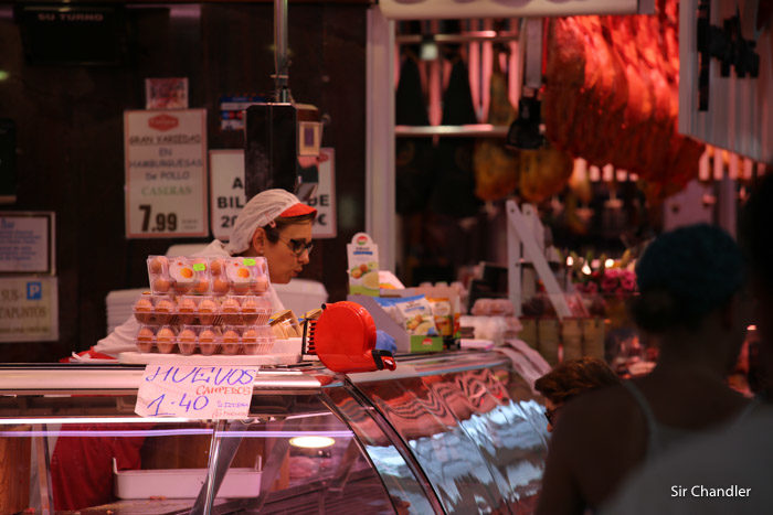 Que bonito luce este mercado!! Parece mucho más amplio (y limpio) que el de la Boquería. ¿Esto es al mediodía? Si es así, la diferencia con el de Barcelona es enorme. Al mediodía no se puede dar un paso con la cantidad de turistas.