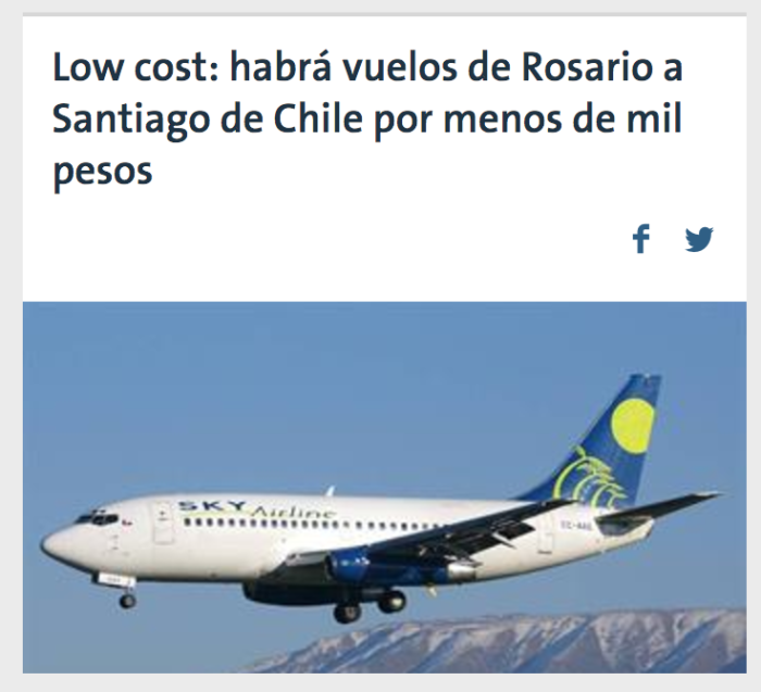 Además del precio, buena opción se abre para volar directo a Chile desde Rosario. Latam y AR solo vuelan con conexión (encima laargas) en Capital! No solo para los rosarinos, sino para una amplia y poblada zona central del país, a los que nos conviene en tiempo y costo (vivo en Provincia de Buenos Aires por ejemplo) viajar hasta Rosario para tomar un vuelo antes que tener que caer sí o sí por Aeroparque o Ezeiza.