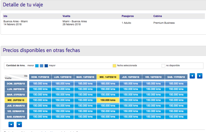 Y la promo es muy útil hoy para quien quiera ir en Business a Miami por ejemplo, que tiene el canje de 150.000, o sea por USD 1.500 (más tasas que deben estar en menos de 2.000 ) tienen derecho a tres valijas…