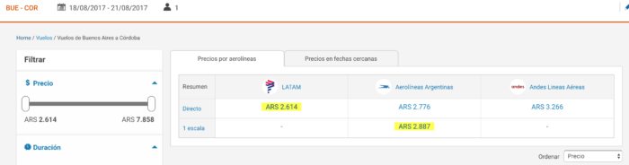 ¿Cómo se podrá diferenciar Flybondi o cualquier aerolínea que quiera ser «low cost»? Dando más pasajes cerca del piso… porque hoy un pasaje a Córdoba está a 1.675, pero si compro hoy para el fin de semana largo a Córdoba… cuesta bastante más… y seguro una low cost que quiere cobrarles a todos menos, les dejará los pasajes a 1.675… más equipaje