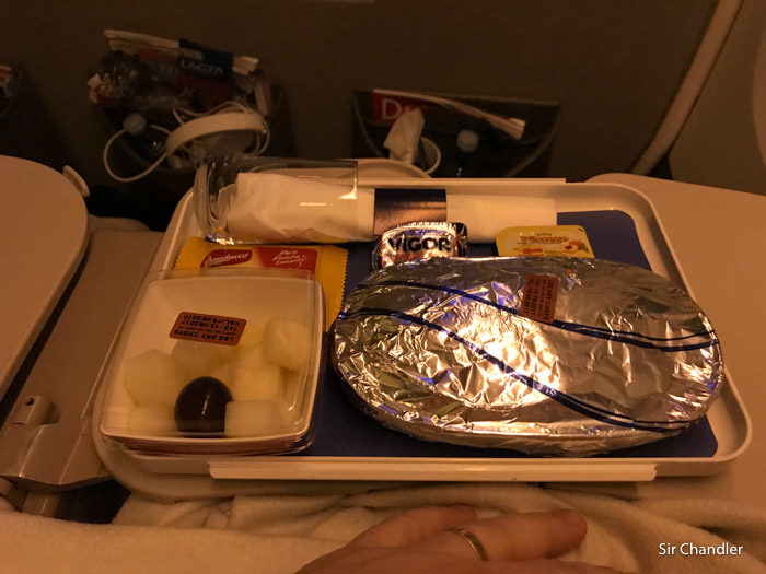 Y me dormí plácidamente… una hora y algo antes de aterrizar me desperté con el desayuno. Chan… habría omelette???