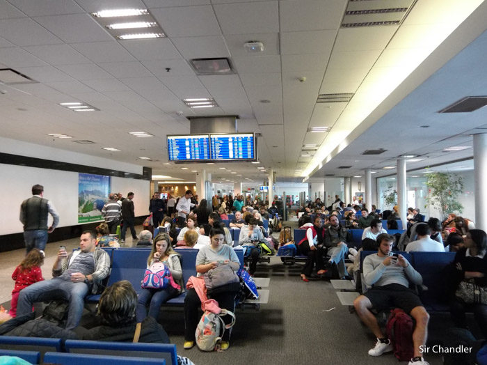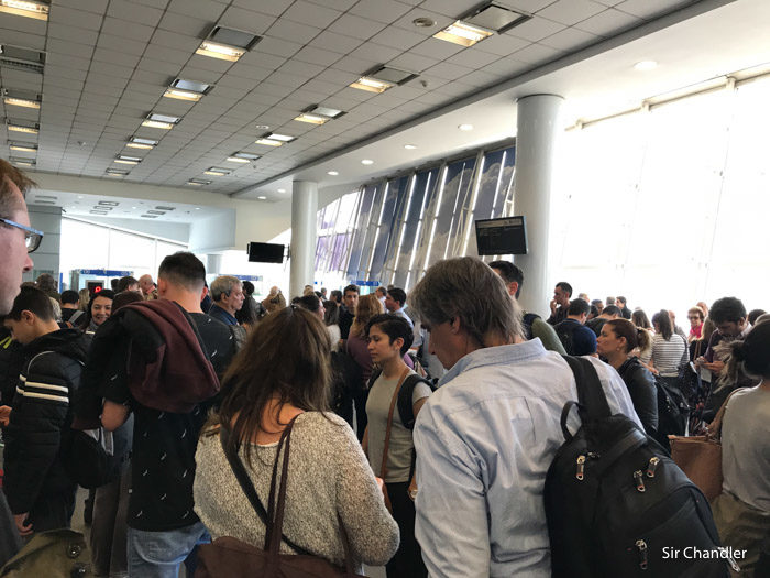 Avanzaba rápido, pero una locura realmente. Adentro en migraciones había cintas de filas imaginarias… pero la gente ordenada
