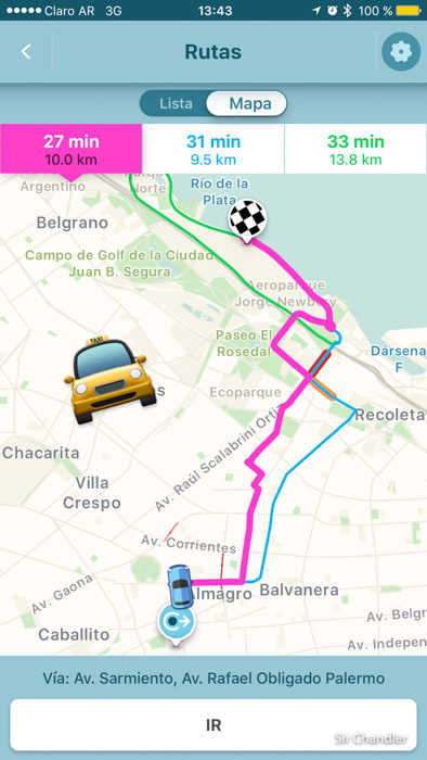 Nos fuimos en Taxi y este fue el recorrido. No se si es muy interesante el recorrido que siempre veo por Waze para llegar mejor, pero si me lo guardé para dejar constancia del costo