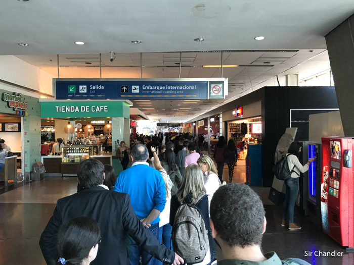 allo ! esas filas son habituales en AEP a esa hora de la tarde, porque entre las 1655 y 1735 salen 4 vuelos…….GIG, MVD-y dos a GRU , las filas en mostradores de lan son tremendas y luego en migraciones también !!!