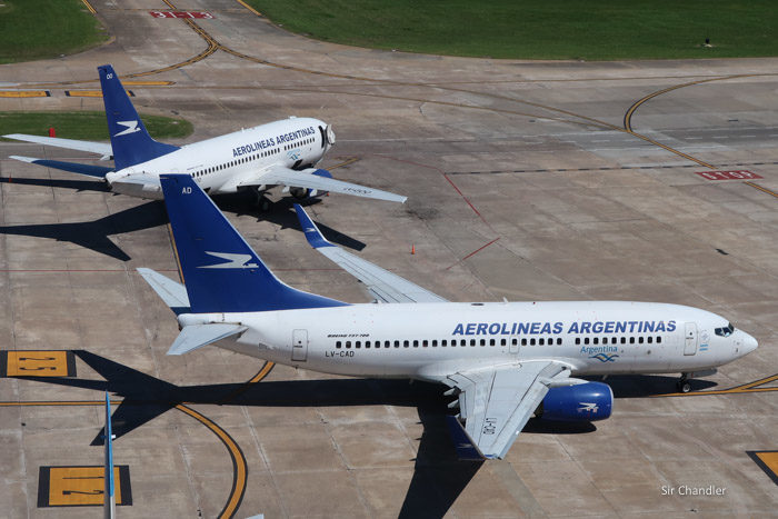 Una foto curiosa, porque no se si quedan muchos más 737 con el viejo livery… ya se deberían ir también. El de atrás CREO es el único sin winglets en la flota