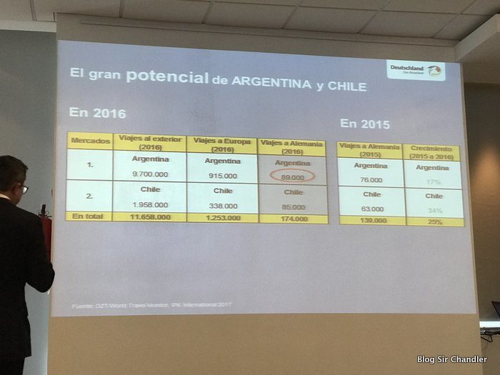 Esto es lo que indica la cantidad de argentinos que fueron a Europa el año pasado y cuantos pasaron por Alemania. Casi un millón de argentinos en Europa y unos 89.000 entraron. Con un crecimiento del 17% en relación a 2015. Los chilenos son un tercio para Europa, pero casi los mismos que nosotros para Alemania