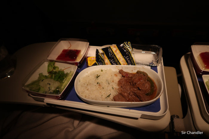 Despegamos y luego de unos 40 minutos llegaron con la cena. Opción 1 era carne con arroz