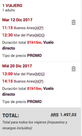 Simulando un pasaje, me dio como costo final ARS 1.148,85 y esto incluye un equipaje de 15kg