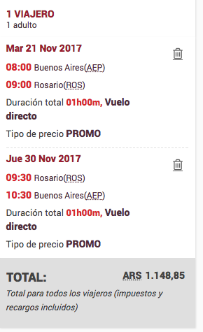 Por aerolíneas se consigue a 958$ a rosario ida y vuelta…no entiendo cual es el negocio de las LOW COST que no son «Low Cost»…