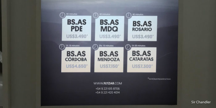 Acá en este aviso podrán ver una mezcla rara. Aclaro que lo vi en el aeropuerto de Punta del Este y es de la aerolínea FLYZAR que pidió permisos en la última audiencia pública, pero no la tengo listada. Esto igual es de los vuelos ejecutivos y sirve para darse una idea de lo que cuesta poner un avión en el aire