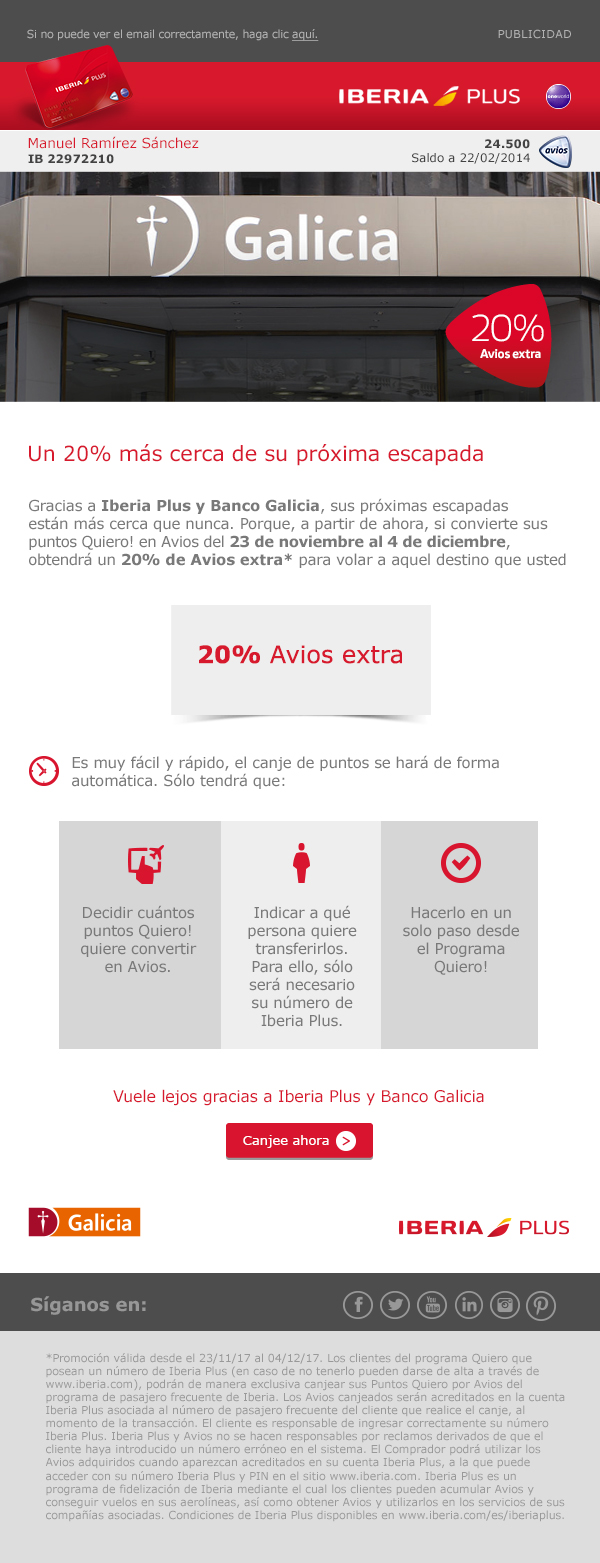 Me ilusione con la posibilidad de que Galicia lance sus tarjetas de credito asociada a AVIOS.