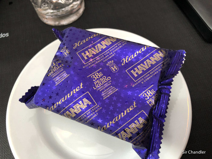 ¿Y el postre? se eliminó como tal, para poner un bocadito típico del país de origen, por lo que para la Argentina sería este… un Havannet «Made in Mar del Plata»