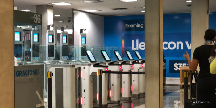 Son iguales (al menos parece) a las que tiene montevideo a la entrada y funcionan solamente con pasaporte con Chip. Lo pones en la entrada, lo «lee», abre la primera puerta de corralito, te paras delante de una camara q regula segun tu altura, y adentro..