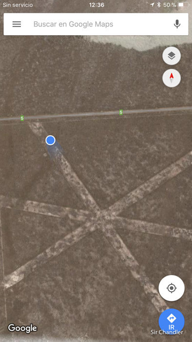 Es extraña la forma. 3 pistas que se cruzan en mismo punto y los finales de pista no son con ángulos rectos en relación a la pista sino que entre ellas forman una línea recta. Muy extraño, como dice Federico, muy de Expedientes X 😉
