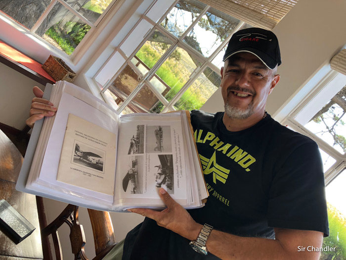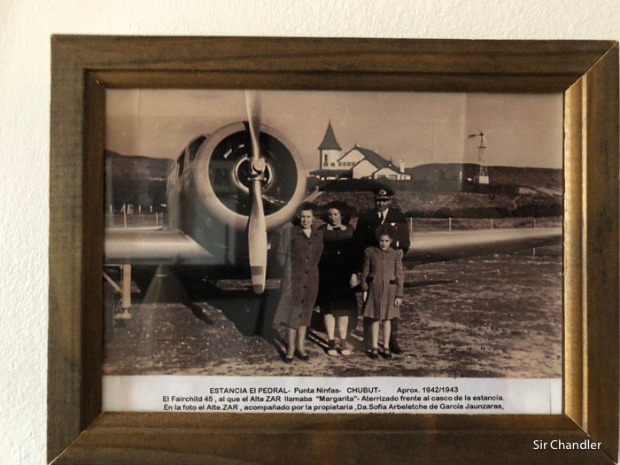 Pero toda esa zona tiene mucha historia de la aviación argentina. En El pedral está esta foto con la casa que ya mostré detrás, con un avión aterrizado ahí mismo… por el comandante Zar (el mismo nombre del aeropuerto de Trelew…)