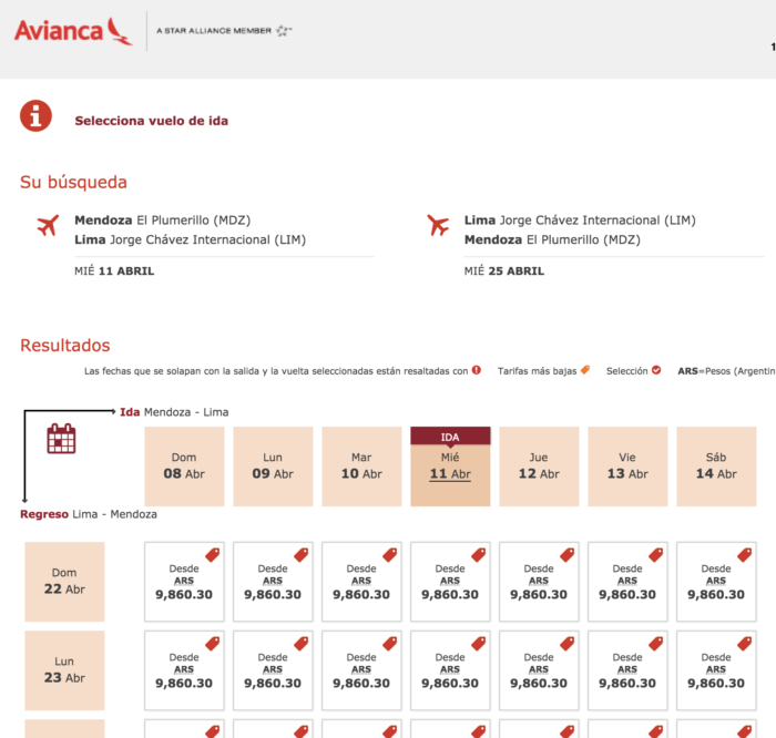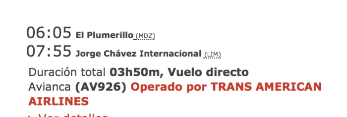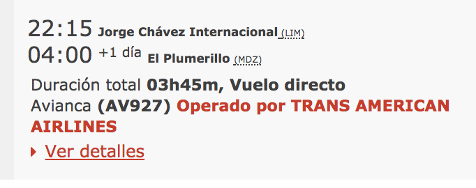 Por aviso de un lector encontré que ya está a la venta el vuelo entre Lima y Mendoza de Avianca. Esto no es Avianca argentina, es el grupo internacional.