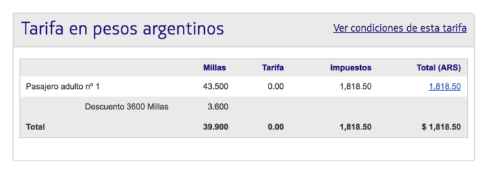 Por eso siempre conviene tener millas de más… comprar cuando hay promos para poder tener la certeza del canje