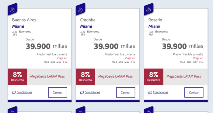 Al mismo tiempo que está la promo de compra de kilómetros, digo de millas, salió promoción para canjear de marzo a junio con descuento