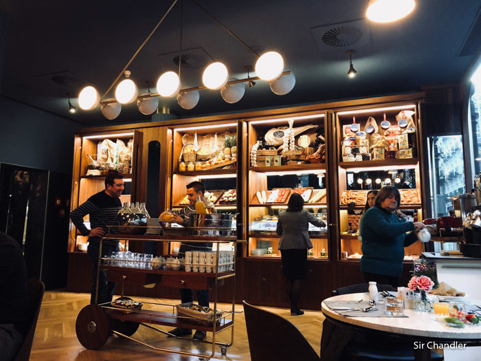 Paso al desayuno. Se sirve en uno de los restaurantes del hotel, que también está con look de varias décadas atrás