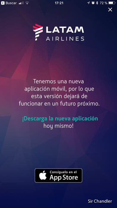 Entonces tienen que bajar la nueva. Les paso el link pero lo podrán ver directo si entran a la vieja en el iphone https://itunes.apple.com/ar/app/latam/id1293404687?mt=8