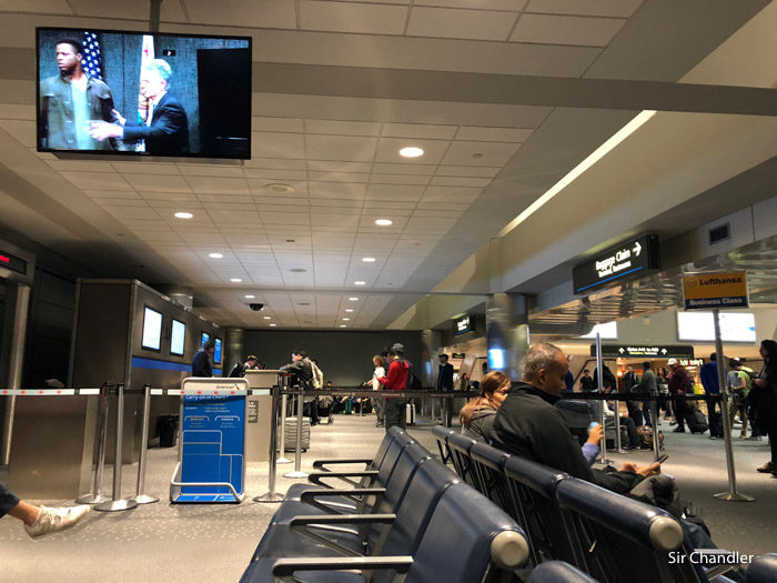 El sector de nuestra puerta de embarque donde la tele pasaba con audio un programa policial… y muchos estaban atentos a eso.
