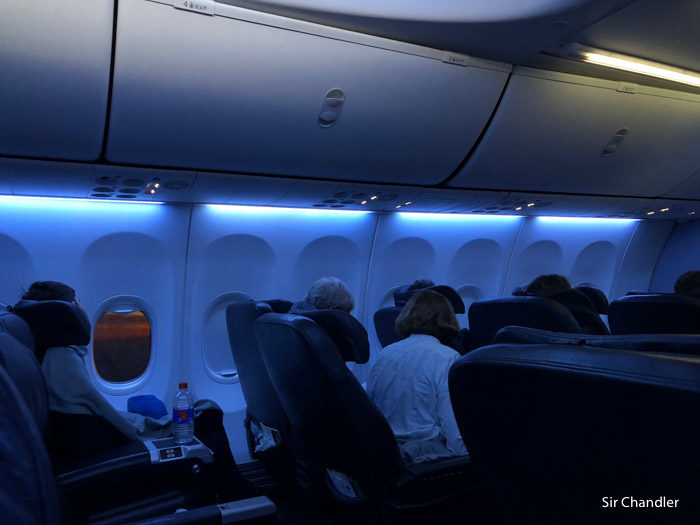 Así estaba la cabina y me sirve para recordar que Copa tiene en los vuelos a Buenos Aires, Rosario y Córdoba siempre asegurados aviones con entretenimiento a bordo. Pero en otras rutas más cortas puede poner aviones que no lo tienen. Y no es que sean aviones más viejos. Simplemente tienen dos configuraciones de sus aviones. En esta ruta a Denver por ejemplo no había pantallas