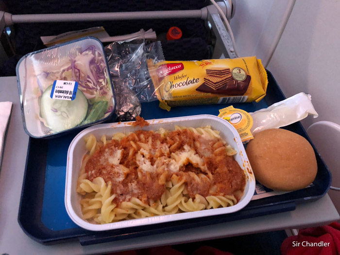 Sigamos con el vuelo. Este al salir a las 12:10 tenía un servicio de almuerzo. En mi caso elegí la pasta