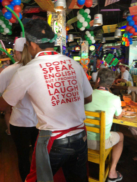 Como bajamos un poco tarde, nos fuimos al centro donde compramos algunas cositas típicas y luego fuimos a comer a Sr Frogg. Linda la remera de los mozos. Buena onda todos