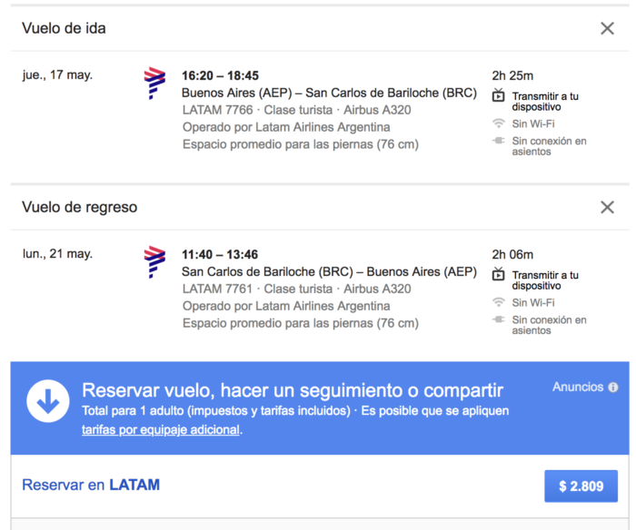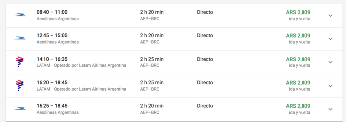 Pero así puedo sacar mi tarifa de PISO TARIFARIO a Bariloche con Aerolíneas o con LATAM a 2.809