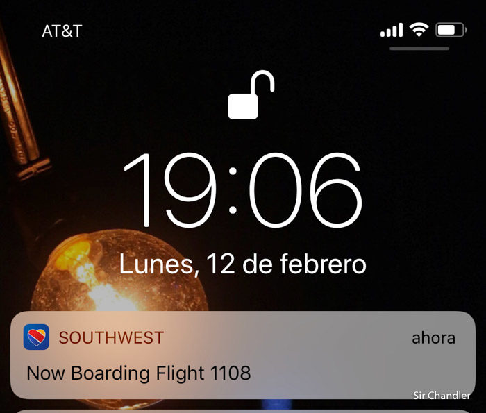 Como recomiendo en cualquier aerolínea que viajen, siempre tengan la app oficial. En este caso la de Southwest avisó con un push el embarque en los dos vuelos. O sea si uno está distraído el celu le avisa que arrancó el embarque. Excelente