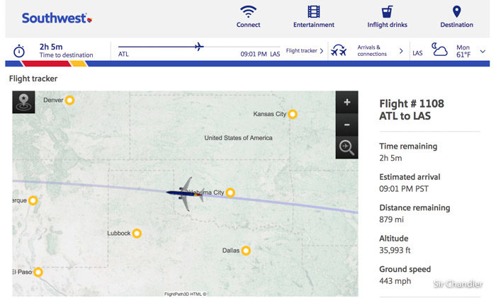 En el aire abrí el portal de Soutwest que sirve para ver películas y series. También muestra donde uno está