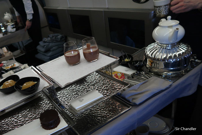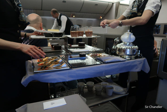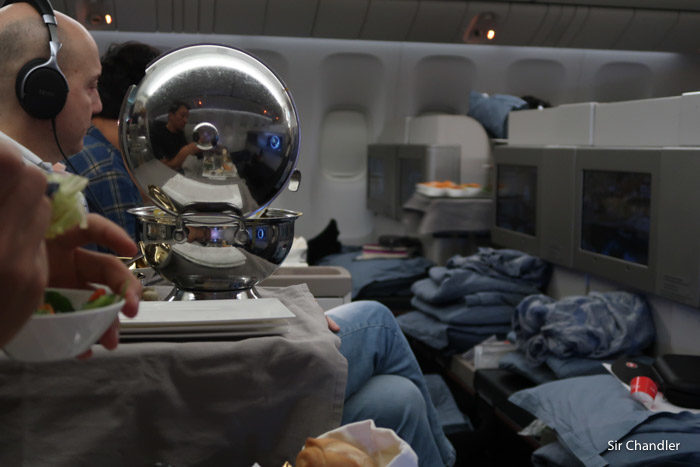Y faltando dos horas para aterrizar posiblemente, pasaron con la cena