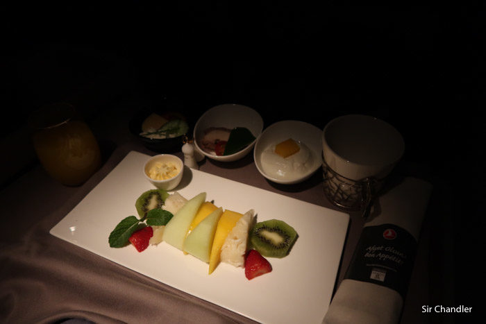 El vuelo sale a la noche de Buenos Aires pero despega luego a las 3:20 desde San Pablo, por lo que a la hora aprox nos dieron un desayuno. Por las dudas recuerdo que esto fue business e invitación de prensa de Turkish