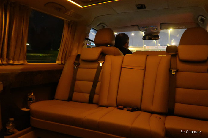 Para cerrar, así era la van que me fue a buscar, pero una noche me tomé un Uber y era igual. O sea para seis personas que podían ir enfrentadas