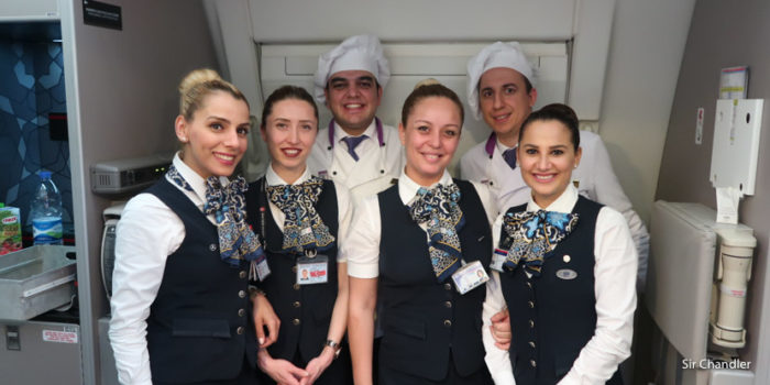 La tripulación fue excelente y cuando terminaron con le servicio de la cena le pregunté a una de las TCP si les podría tomar una foto a los chef que había en el vuelo y a alguna de ellas. Al rato me vino a buscar y se habían arreglado varios! y salió esto. Genios todos