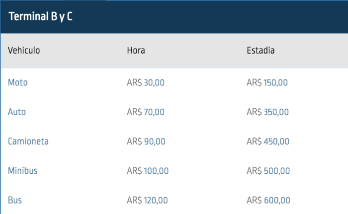 El valor normal del estacionamiento en la parte B y C de Ezeiza es este al 22 de abril de 2018