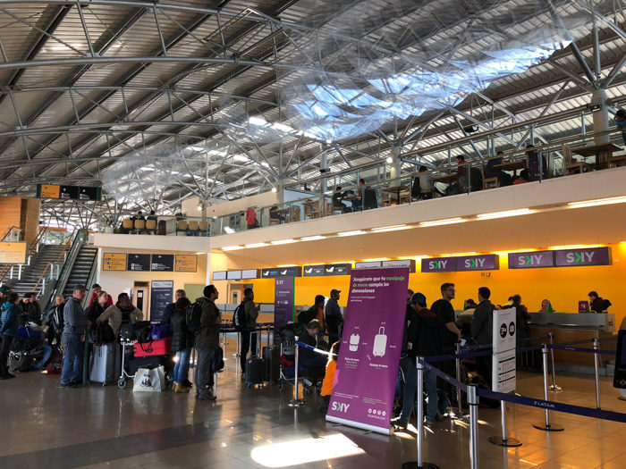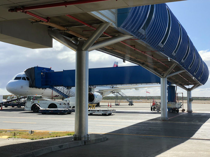 Aterrizamos en Punta Arenas que tiene estas mangas. Esta es la vista desde la espera de la zona de equipaje