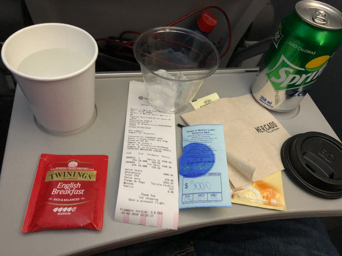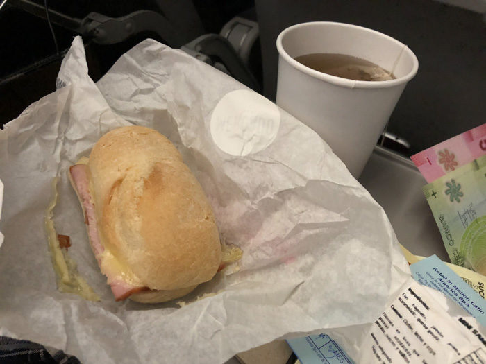 Acá también obviamente estaba Mercado Latam y me compré un sandwichito caliente y un te. Esta vez pagué cash