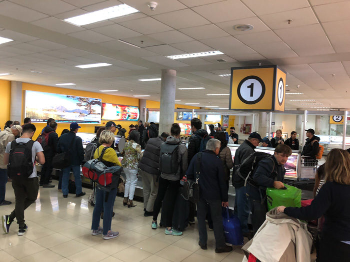 Llegué temprano desde Valparaiso y me fui a despachar el equipaje. Luego de eso a seguridad. Buen detalle que hay monitor que indica el tiempo de espera en el sector